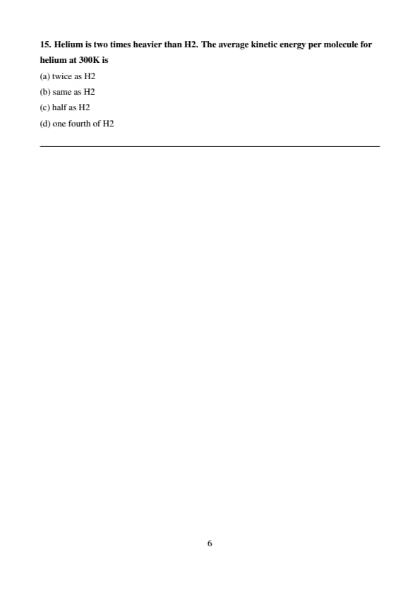 Helium is two times heavier than H2. The average kinetic energy per molecule for helium at 300K is