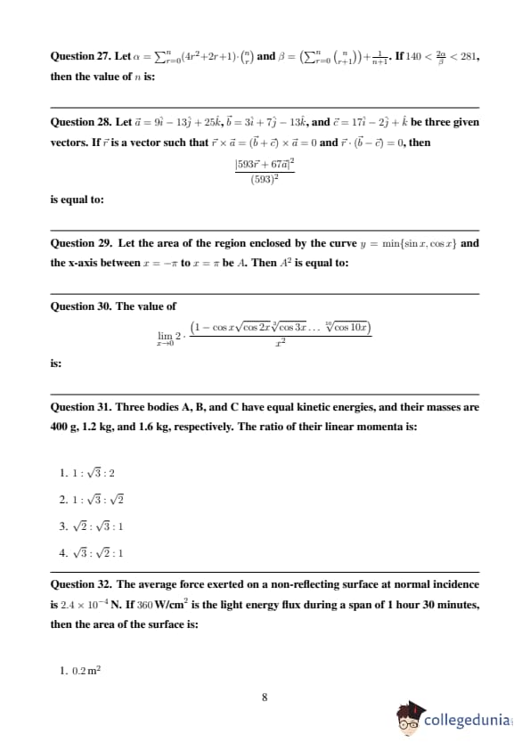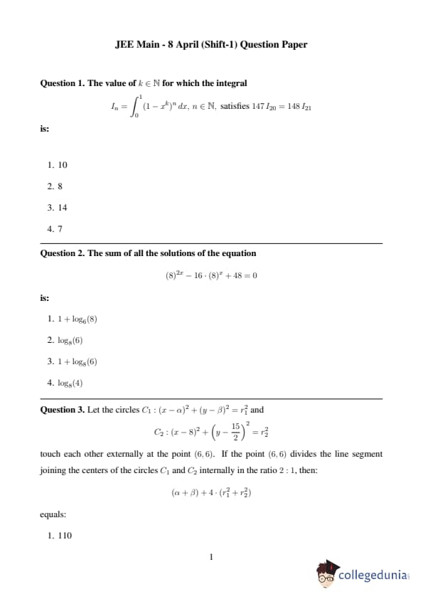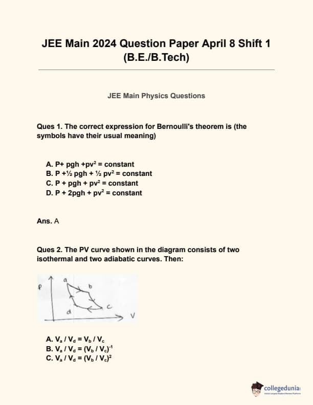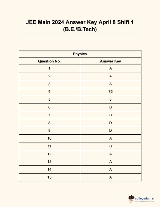 | JEE Main 2024 (Apr 8 Shift 1) Question Paper with Answer Key | Check Solutions |
