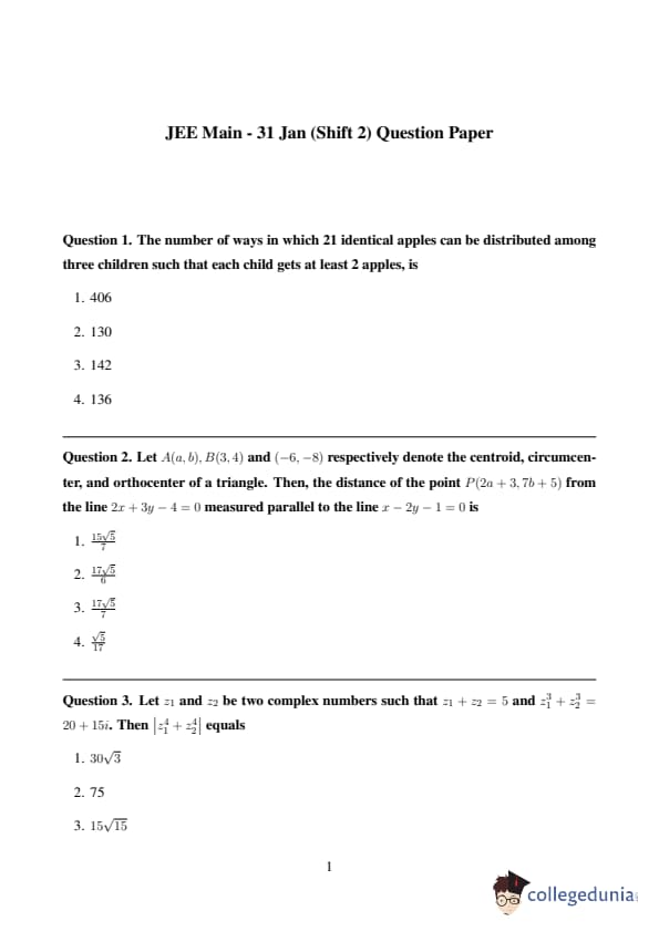 | JEE Main 31 Jan Shift 2 2024 Question Paper | Check Here |