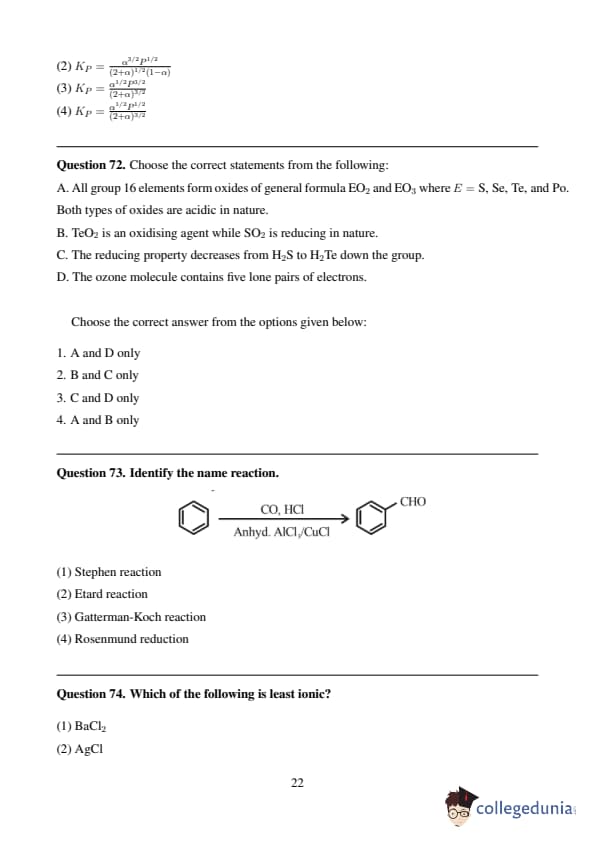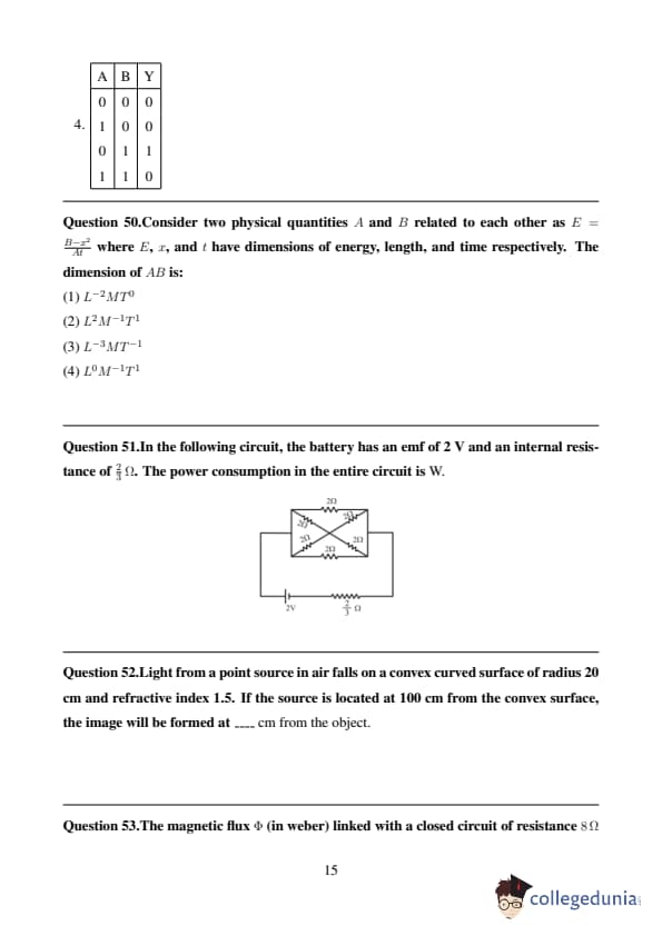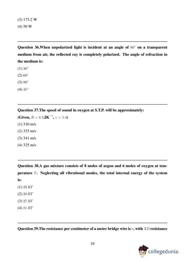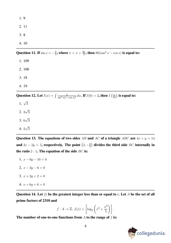 | Number of Sections | Three- Physics, Chemistry, Mathematics |