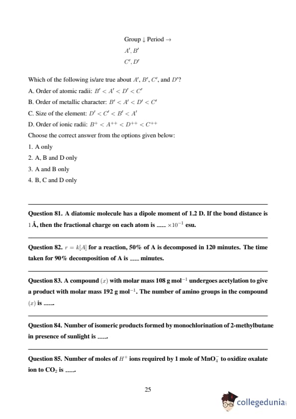 | Type of Questions | MCQs and Numerical Answer Type Questions |