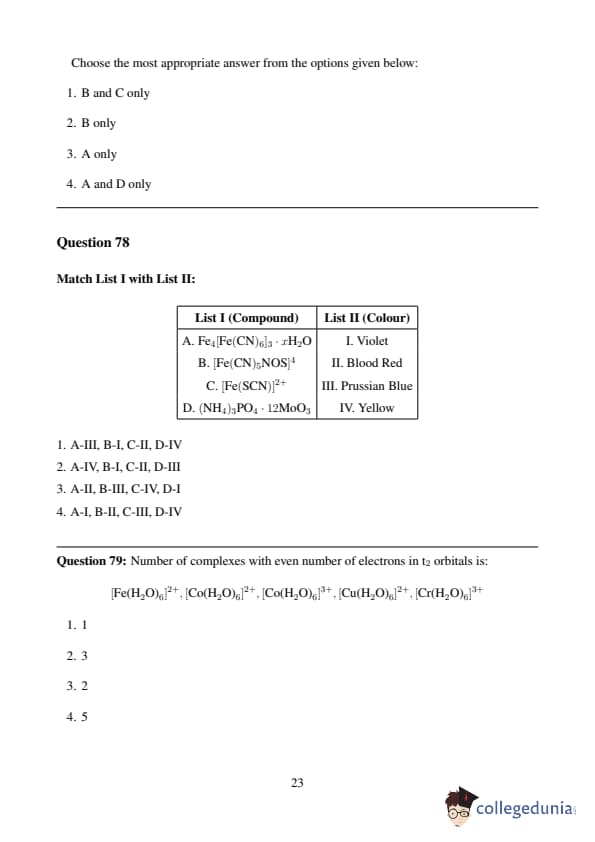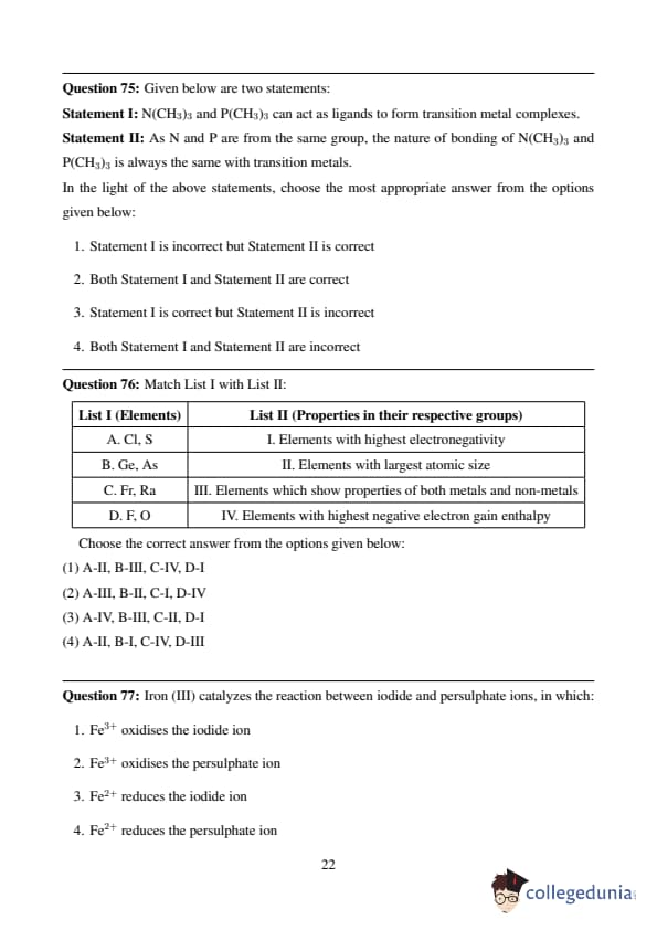 Statement I: The higher oxidation states are more stable down the group among transition elements unlike p-block elements.