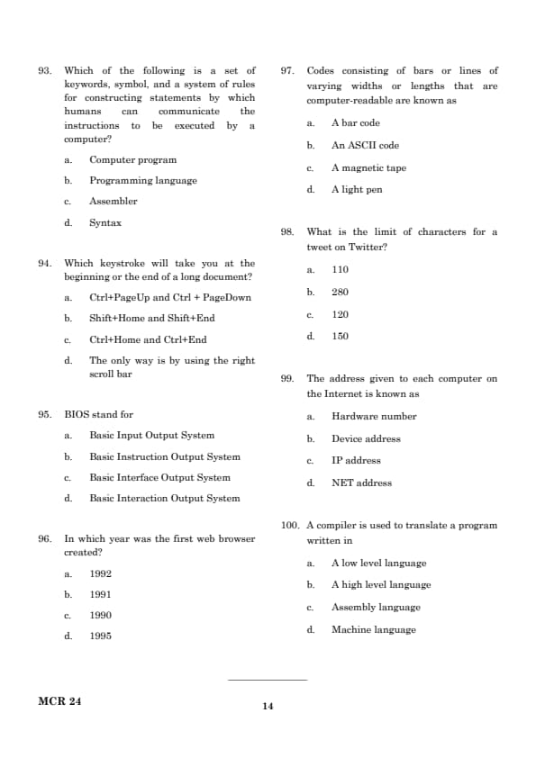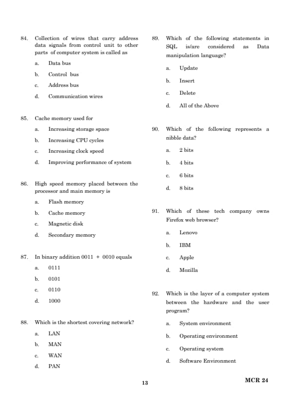| TANCET 2024 MCA Question Paper with Answer Key PDF | Check Solution |