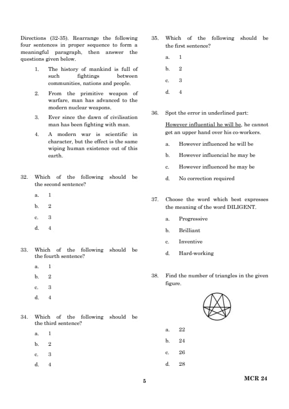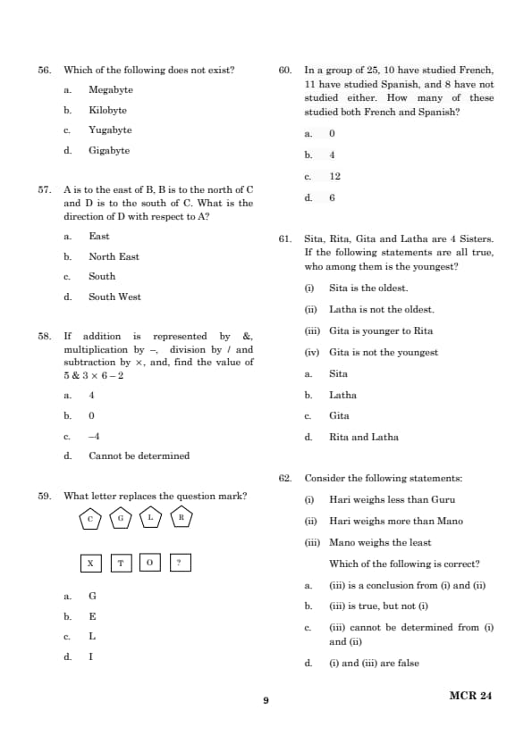 TANCET 2024 MCA Question Paper with Solutions PDF will be available for download here. Anna University is going to conduct the TANCET exam on March 9, 2024. TANCET 2024 Question Paper for MCA comprises 100 questions to be attempted in 2 hours.