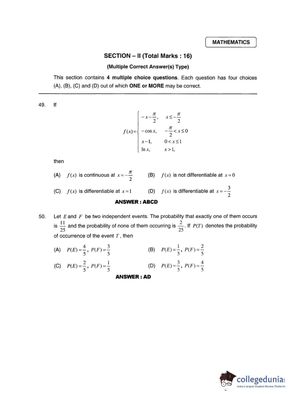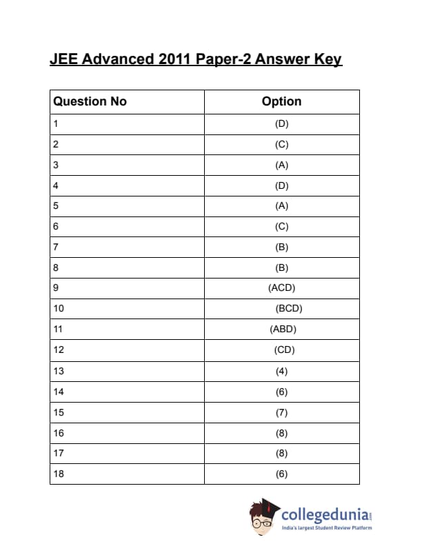 | JEE Advanced 2011 Paper 2 Question Paper PDF | JEE Advanced 2011 Paper 2 Answer Key PDF |