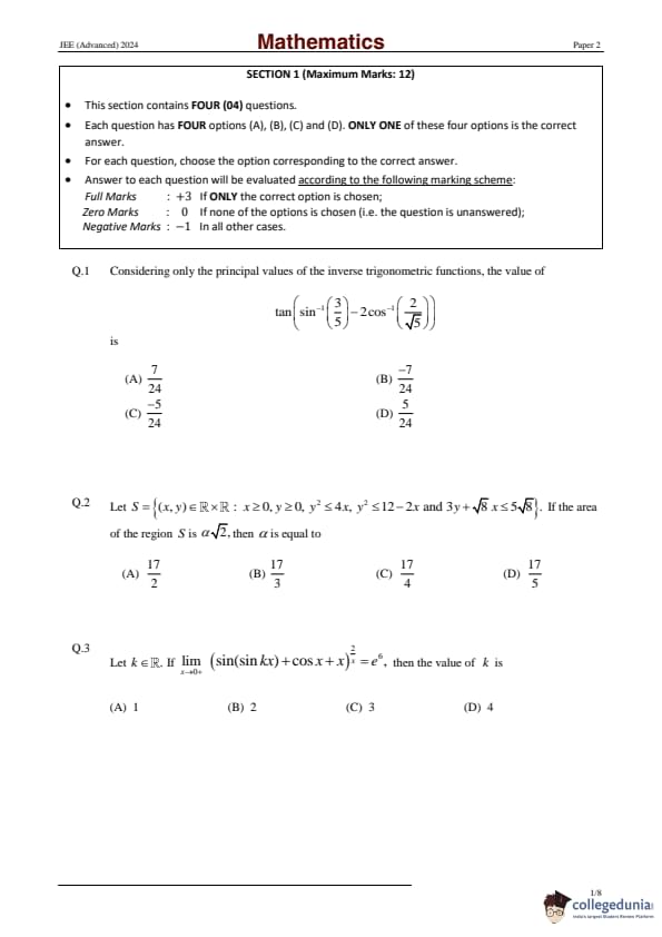 | JEE Advanced Question Paper 2024 | JEE Advanced Answer Key 2024 |