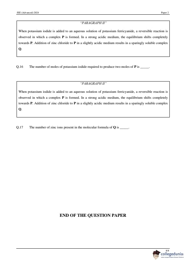 JEE Advanced 2024 Question Paper 2 is available for download here. IIT Madras conducted JEE Advanced 2024 Paper 2 on May 26 from 2:30 PM to 5:30 PM. Candidates can download the official JEE Advanced Question Paper 2024 using the links provided below.