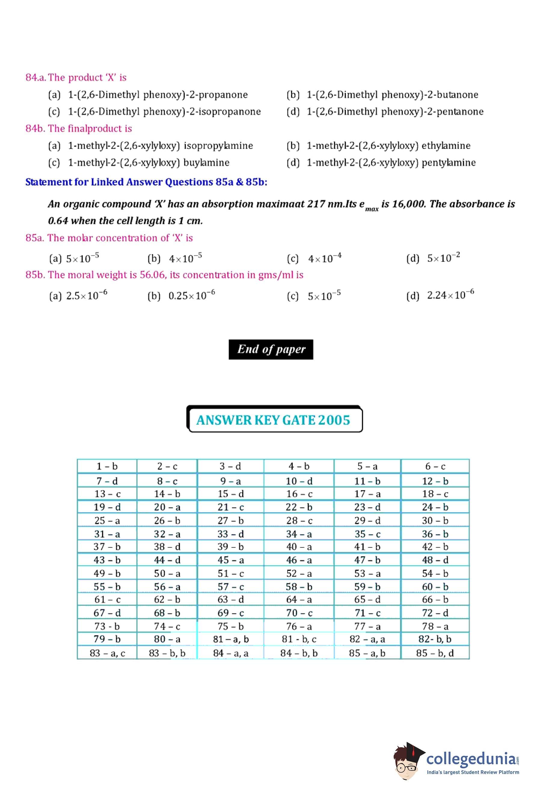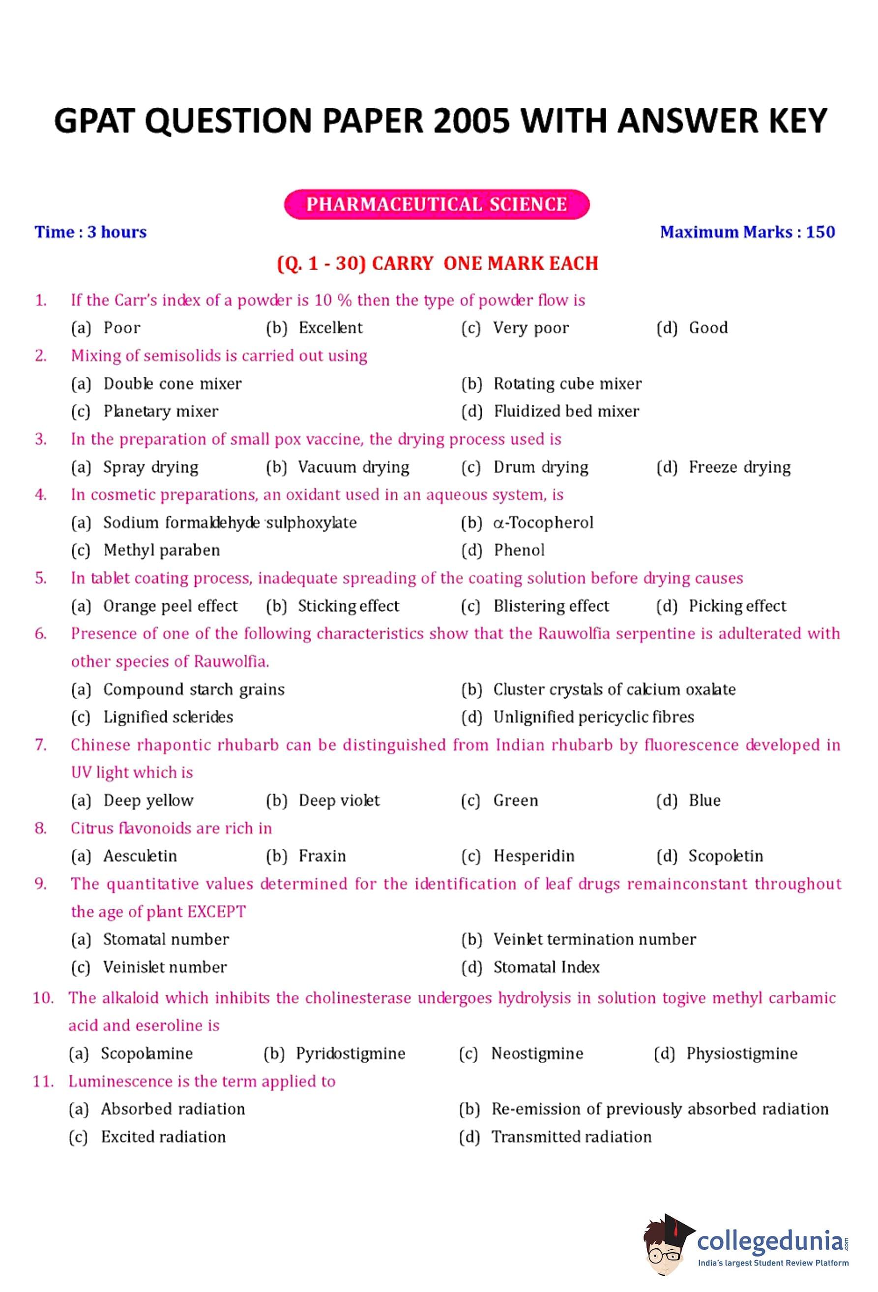 | GPAT 2005 Question Paper PDF | GPAT 2005 Answer Key PDF |