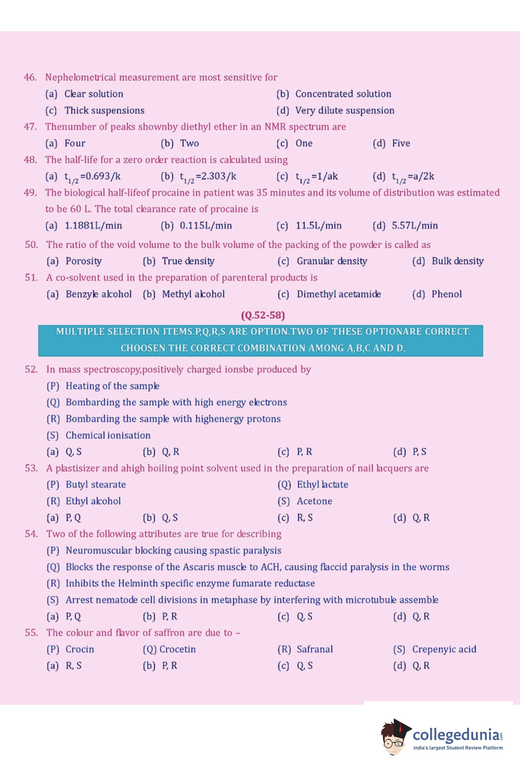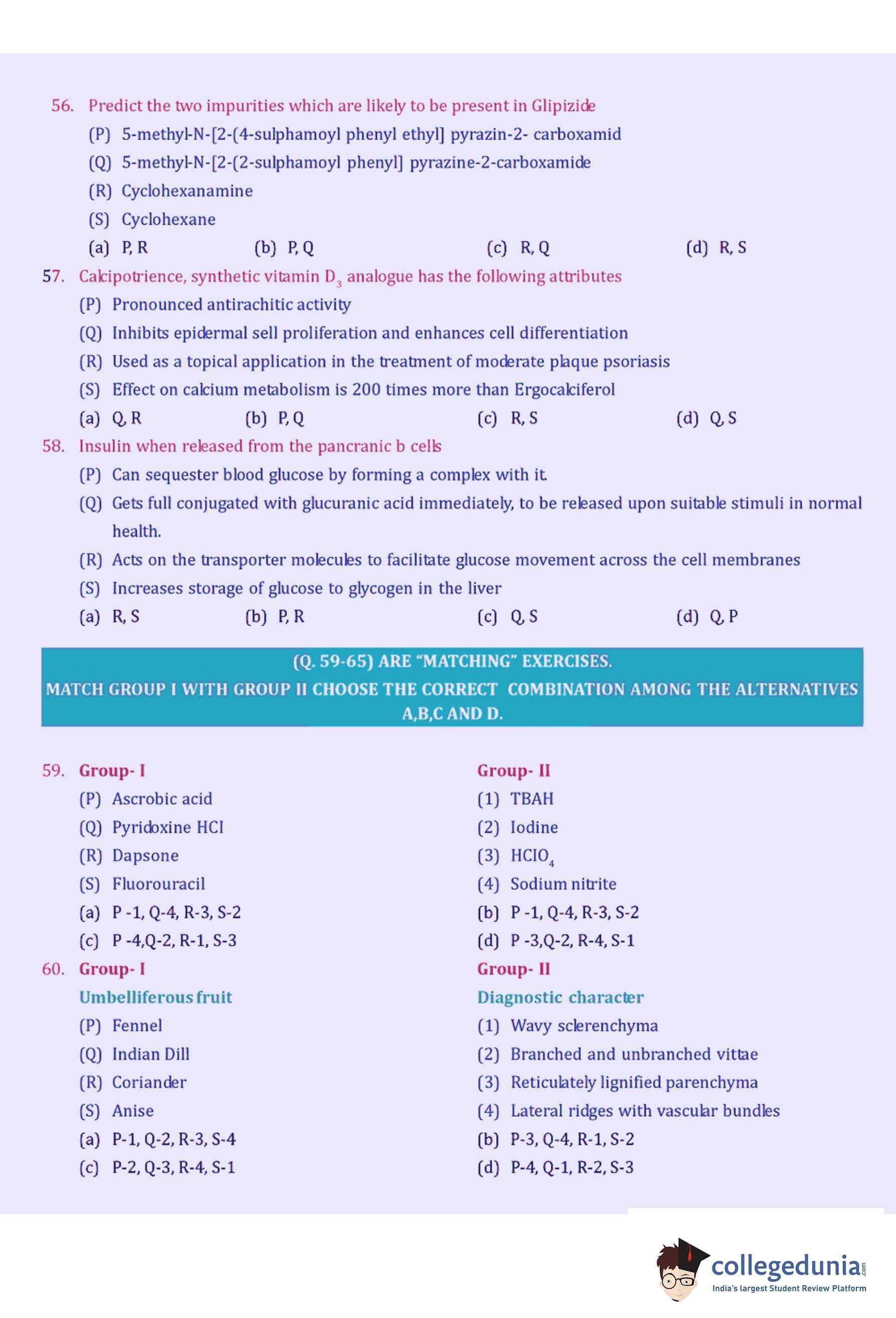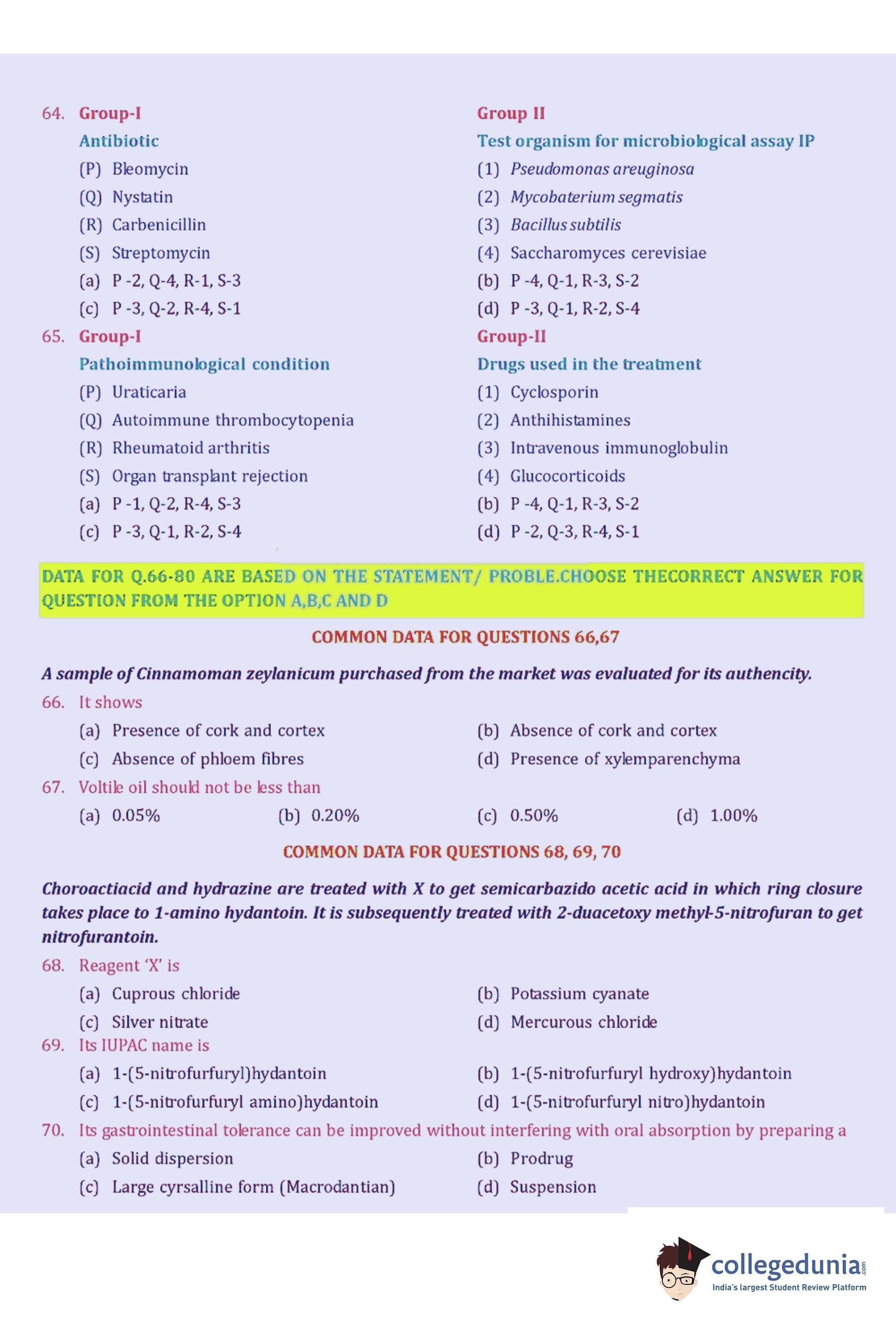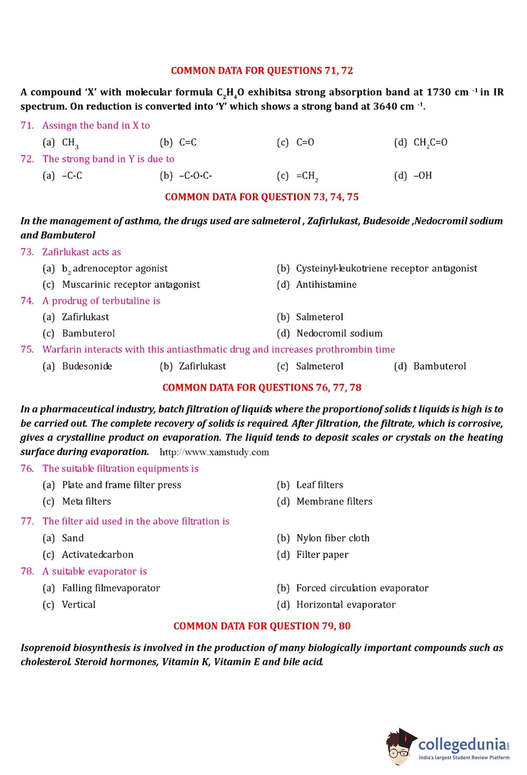 GPAT 2005 Question Paper with Answer Key pdf is available for download. The exam was conducted by All India Council for Technical Education (AICTE). The question paper comprised a total of 85 questions.