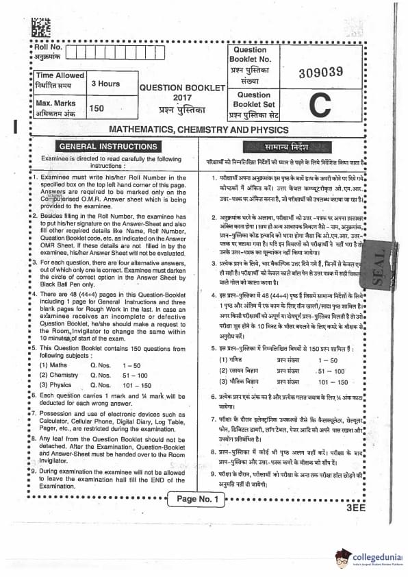 BCECE 2017 Question paper (Set C) is available for download here. BCECE exam was successfully organized by Bihar Combined Entrance Competitive Examination Board on June 18, 2017. The question paper comprised a total of 150 questions divided into 3 sections.