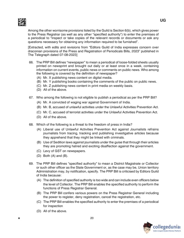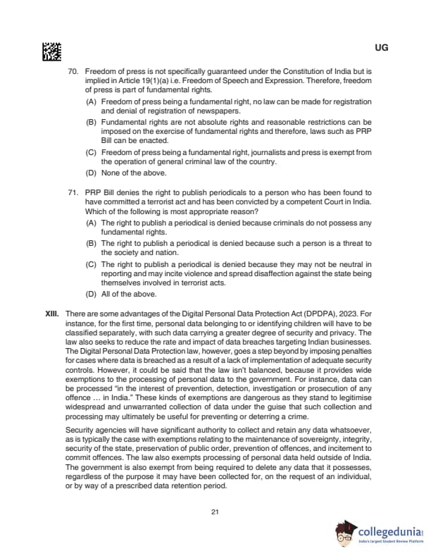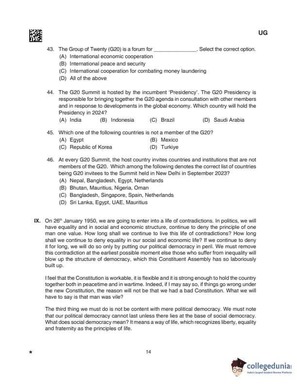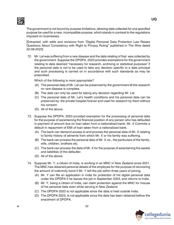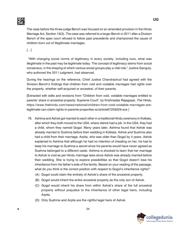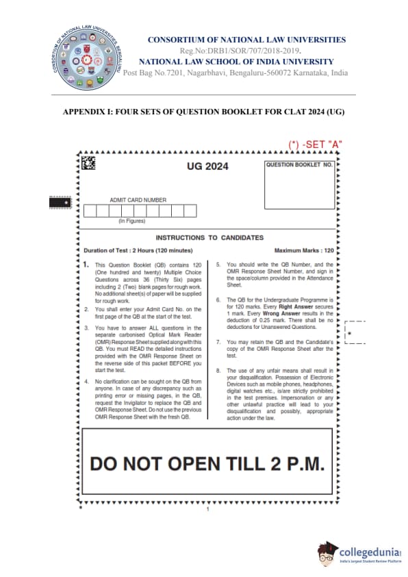 CLAT 2024 UG Question Paper with Solution PDF- Set A