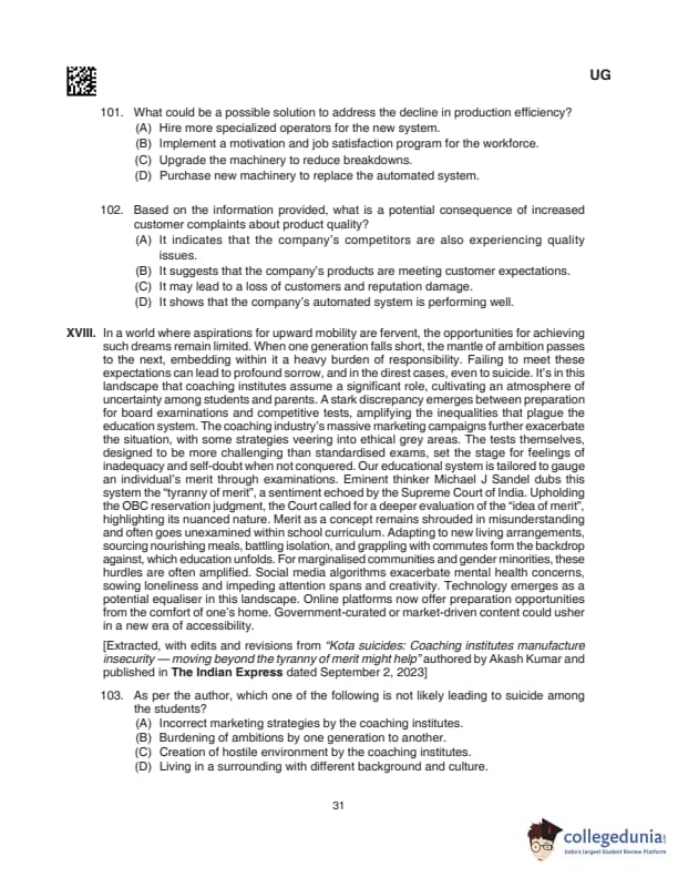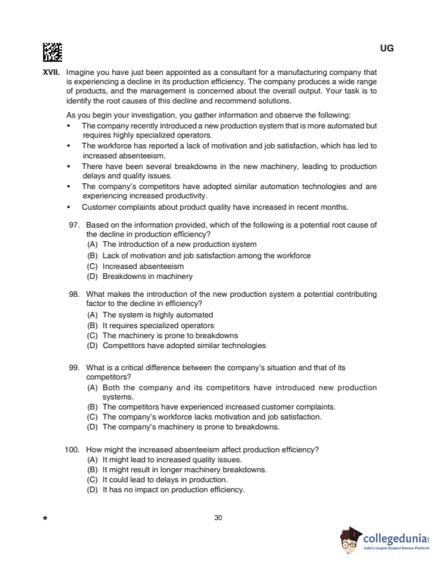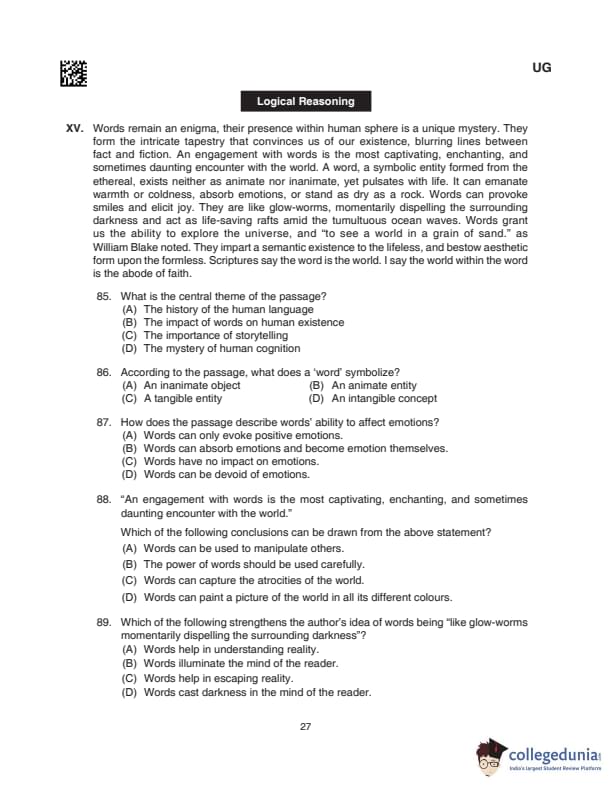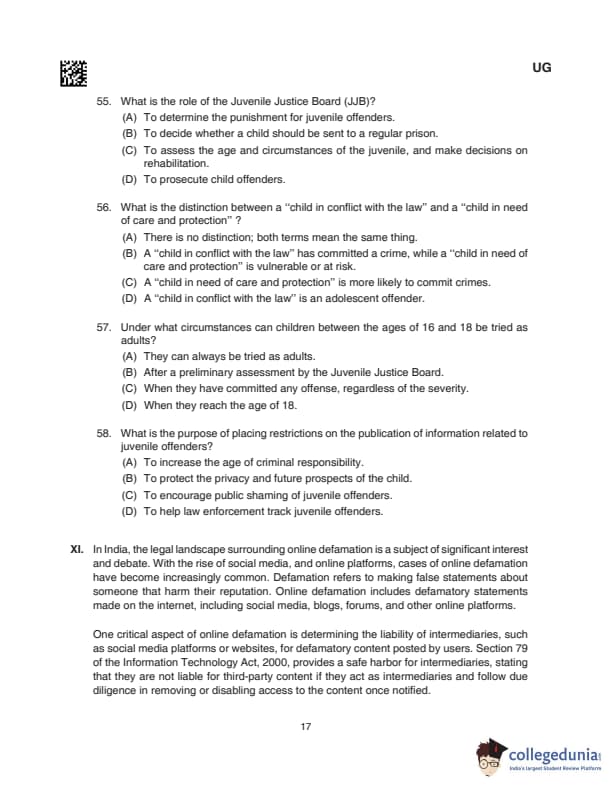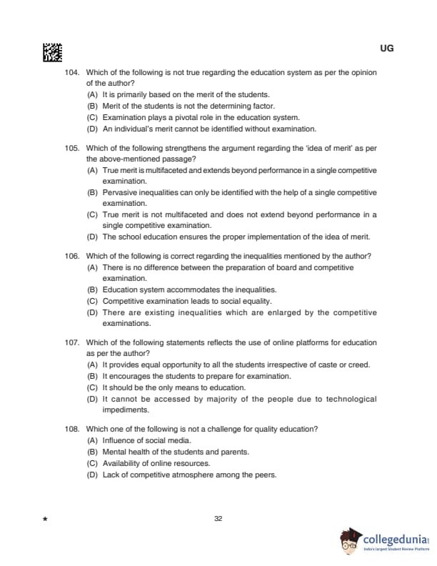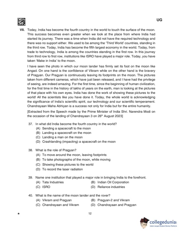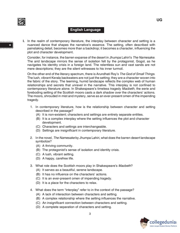 CLAT 2024 UG Question Paper Set A with Answer Key and Solution PDF is available for download. The exam was conducted by the Consortium of NLUs on December 3, 2023. Candidates were required to answer a total of 120 objective-type questions carrying 1 mark each covering five major sections: English Language, Current Affairs & General Knowledge, Legal Reasoning, Logical Reasoning and Quantitative Techniques.