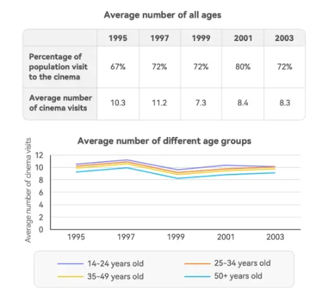 Practicing with IELTS Writing practice papers helps candidates enhance their skills in analyzing and summarizing different types of data presentations. For the table and graph showing information about cinema visits in Auckland between 1995 and 2003, the focus should be on identifying trends in attendance, comparing the data across different years, and highlighting any noticeable fluctuations. Regular practice with such tasks helps candidates develop the ability to pinpoint relevant details, draw meaningful comparisons, and organize their responses effectively, leading to improved performance in the IELTS writing section.