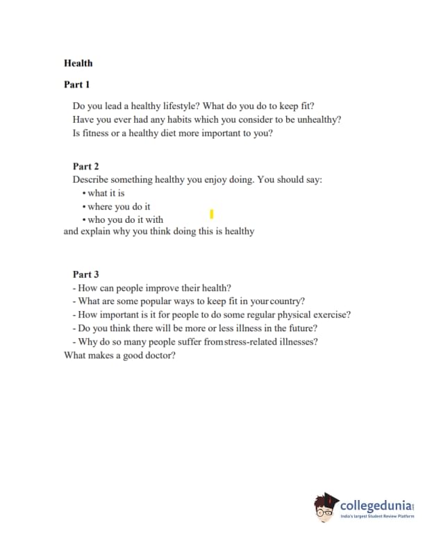 IELTS Speaking Question Paper for the exam is available for download. This IELTS exam was organized effectively by the British Council. In terms of Difficulty level IELTS Speaking was of easy to moderate level There are 13 questions in total for this section. All the13 questions of IELTS Speaking have been divided into three parts with 3 questions in Part 1, 4 questions in part 2 and 6 questions in Part 3.