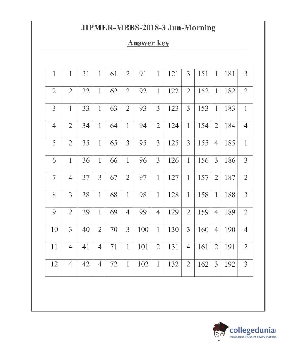 | JIPMER 2018 Question Paper PDF | JIPMER 2018 Answer Key PDF |